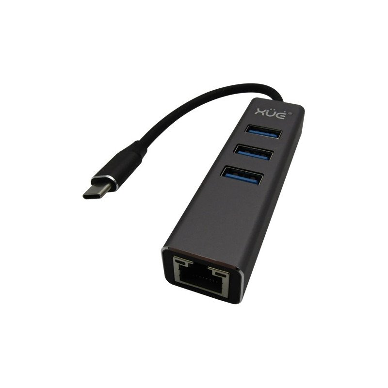 CONVERTIDOR TIPO C a RJ45 LAN ethernet giga 10/100/1000 con 3 puertos USB 3.0